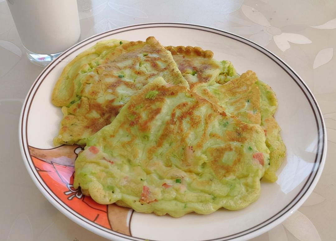 (4)锅中放入一勺面糊,烙制两面微黄,早餐饼就好了。